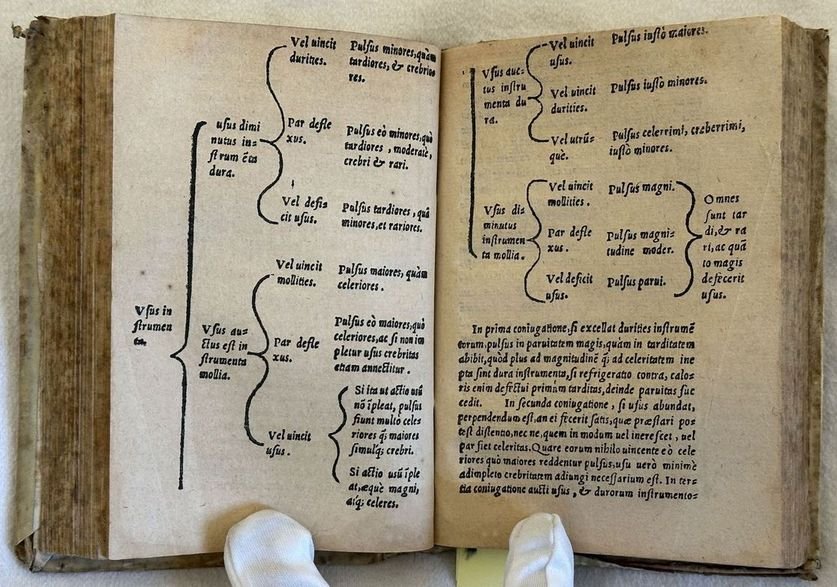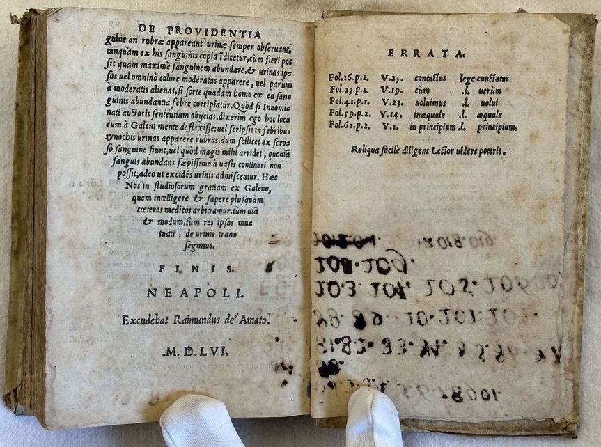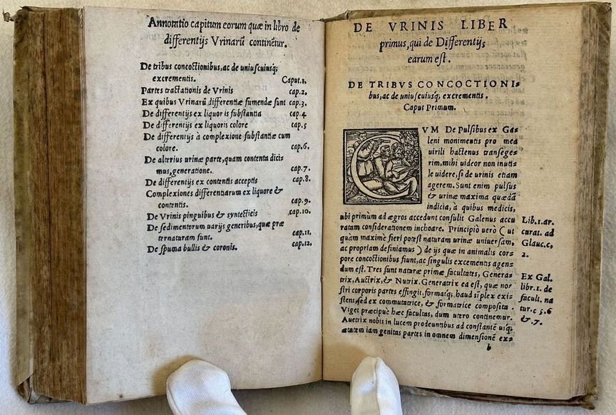 Prima edizione del 1556 di questo raro e celebre testo di nefrologia del medico originario di Gaeta Leone Rogano (m. 1588). La data di stampa è indicata nell'ultima carta che precede l'errata. La prima opera è un commentario all'opera "De pulsibus transegit brevi ex ponuntur" La seconda con frontespizio proprio è la celebre De Urinis divisa in tre libri: De differentiis urinarum, De causiis urinarum, De Providentia ex urinis. Numerazione singola. Belle lettere iniziali decorate. Alcuni numeri manoscritti alle ultime due carte. In buone condizioni. Copertina in piena pergamena settecentesca in buone condizioni generali con lievi usure ai margini e dorso. Legatura in buone condizioni. Pagine in buone condizioni con fioriture e bruniture. In 16. Dim. 15,5x10,5 cm. Pp. 166+(2)+69+(1). First edition of 1556 of this scarce and ffamous text of nephrology by the physician from Gaeta Leone Rogano (m. 1588). The date of publishing is indicating in the page preceding the errata. The first work is a commentary to the work "De pulsibus transegit brevi ex ponuntur" The seocnd one with its own title page is the famous De Urinis divided into three books: De differentiis urinarum, De causiis urinarum, De Providentia ex urinis. Single numbering. Beautiful decorated capital letters. Some handwritten number in the last two pages . In good conditions. Full parchment cover of 18th century in good general conditions lightly worn in the extremities. Binding in good conditions. Inside pages are in good conditions with foxing and yellowings. In 16. Dim. 15,5x10,5 cm. Pp. 166+(2)+69+(1). <BR><BR>