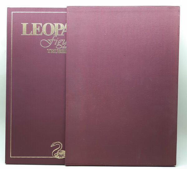 cofanetto rigido in tela color rosso scuro con lievi segni del tempo, legatura rigida in tela colore rosso scuro con titoli in oro al piatto anteriore e al dorso, fogli di guardia colorati, interno in buono stato, poesie e riproduzioni di grafite inchiostri su carta bianca dell'artista, numero tavole 50 + indice dimensioni cm 49 * 34,5