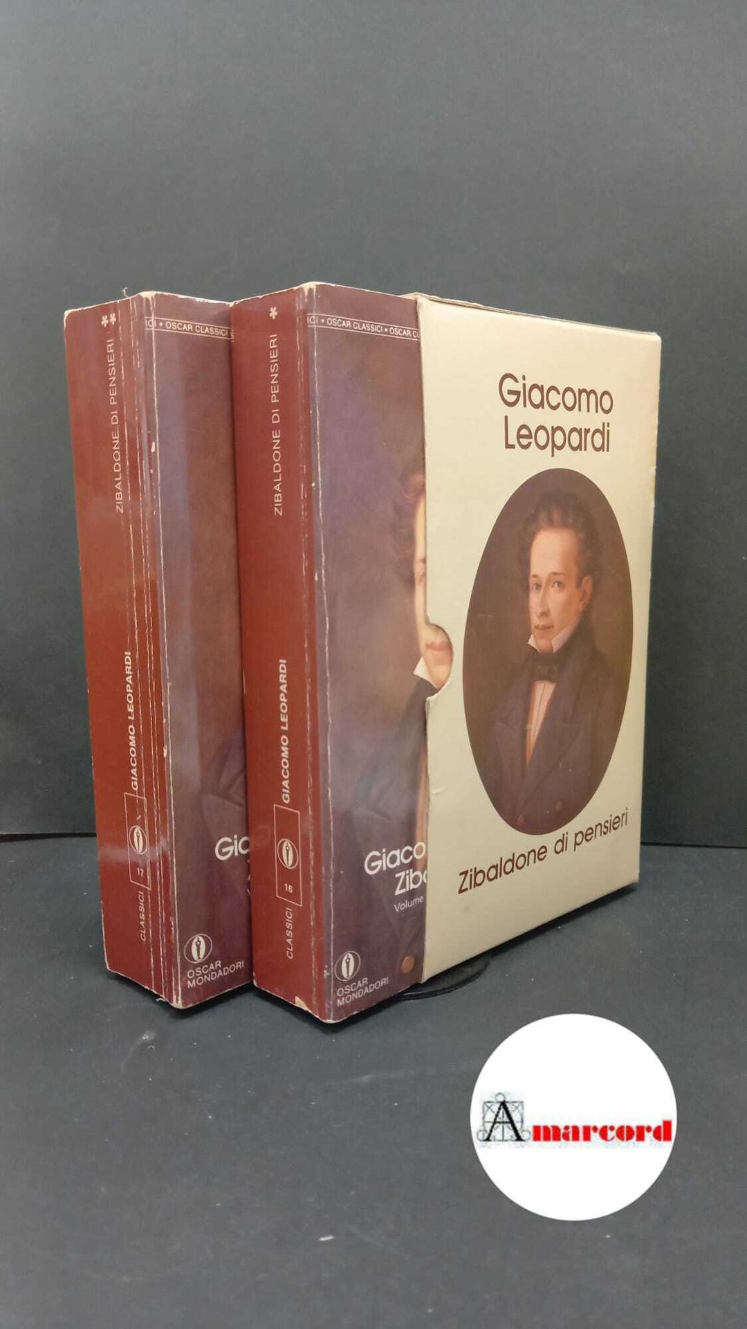 1051 Leopardi, Giacomo Leopardi, Giacomo. , and Solmi, Sergio. , De Robertis, Giuseppe. , Moroni, Anna Maria. Zibaldone di pensieri 2 voll. Milano Mondadori, 1992. , Mondadori 1992 italiano, in ottavo 1188 complessive 18104