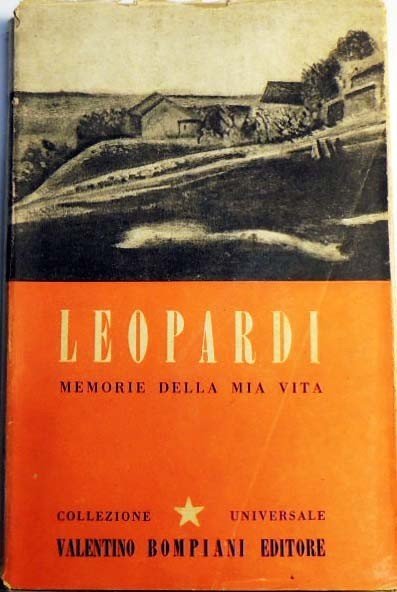 Giacomo Leopardi, Memorie della mia vita, a cura di Beniamino Dal Fabbro, Bompiani, Milano 1945, terza ed., pp. 270, cm 18, brossura ed. con sovracoperta. Collana Corona Collezione Universale Bompiani, n. 21. Tracce d'uso alla sovracoperta con piccole mancanze al dorso e uno strappetto. Per il resto buon esemplare.