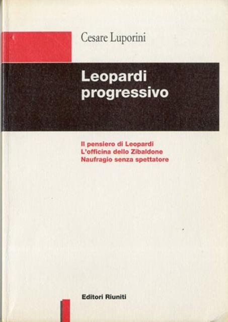 XVI, 148 p. ; 21 x 15 cm. Nuova biblioteca di cultura. Giacomo Leopardi non fu filosofo "in senso tecnico e critico-scientifico", ma piuttosto "grande moralista" di levatura europea. In questo magistrale saggio di Cesare Luporini, del 1947, la vicenda morale e intellettuale del poeta è ripercorsa dall'iniziale condizione di sofferta solitudine, attraverso la delusione storica della cultura borghese e l'approdo al più convinto materialismo, fino alla formulazione, negli anni estremi, di un arduo e affascinante progetto di umanità sociale e progressiva. Brossura editoriale, coperta in cartoncino flessibile plastificato e colorato (b/n e rosso). Qualche sottolineatura a penna rossa, per il resto libro integro, da studio. Codice libreria 7016.