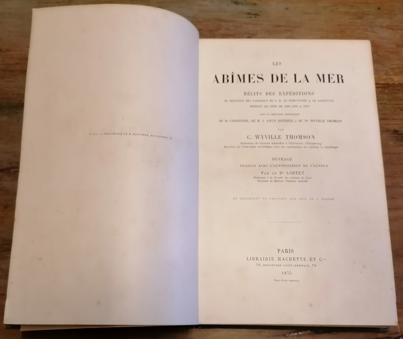 Les abimes de la mer. Récits des expéditions de draguage des vaisseaux de S. M. le Porcupine & le Lightning pendant les étés de 1868, 1869 & 1870, sous la direction scientifique du Dr. Carpenter, de M. J. Gwyn Jeffreys & du Dr. Wyville Thomson.
