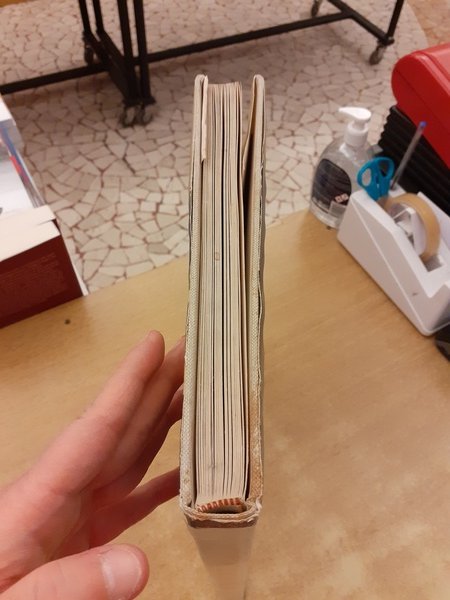 Copertina rigida in tela, con sovracoperta in carta e foglio di acetato a protezione.
