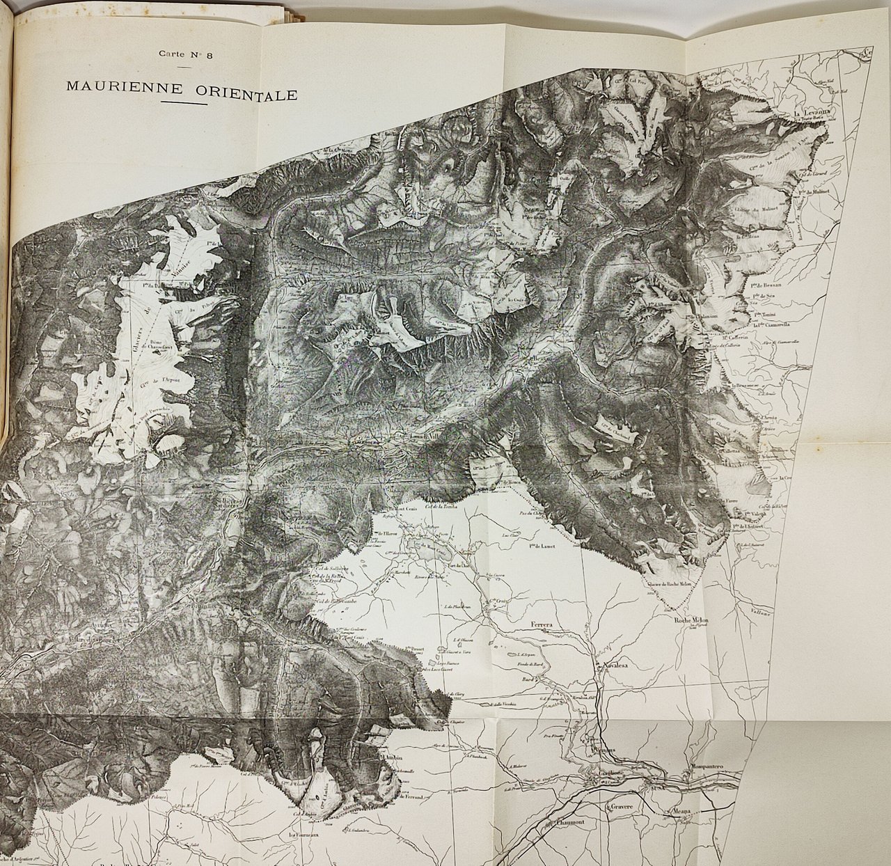 Prima edizione. Lingua del testo: francese. Pagine numerate: dalla 349 alla 698. Formato: 18 x 26,5 cm circa. Stato di conservazione: Segni del tempo e dell'uso sulla copertina che, come si può vedere dalle fotografie, si presenta 'sporca', con un'orecchia' sull'angolo superiore destro e con qualche pieghetta e minuscolo taglietto sui margini; leggeri e ordinari ingiallimenti ma, nel complesso, un buon esemplare. Interno ancora intonso. Nessuna scritta o sottolineatura nel testo. Con numerose illustrazioni e tavole in nero nel testo. La presente inserzione fa riferimento esclusivamente alla parte seconda del volume terzo di quest'importante opera dedicata alle Alpi Occidentali.