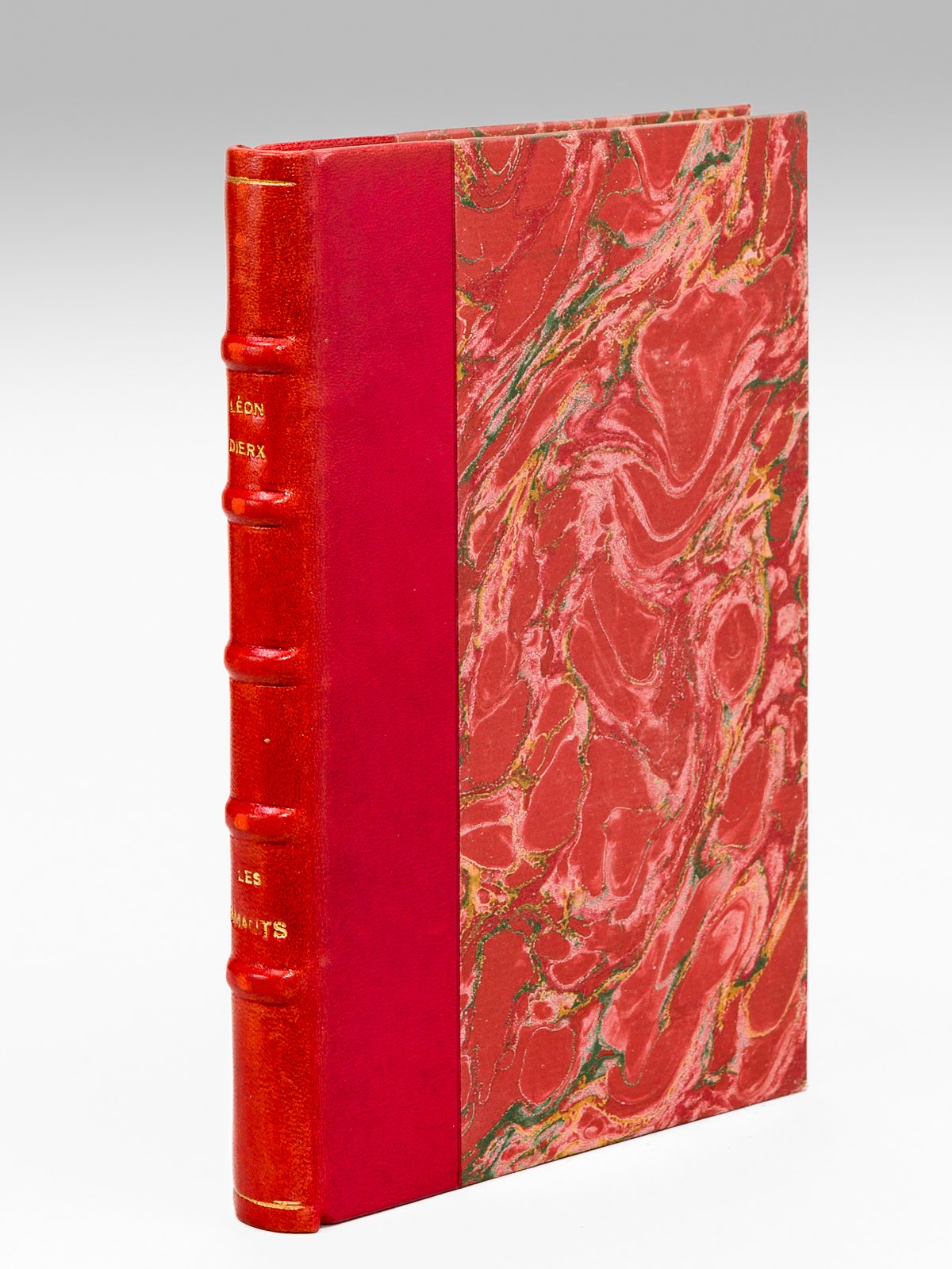 1 vol. in-12 reliure postérieure demi-basane rouge, dos à 5 nerfs, couverture conservée, Alphonse Lemerre, Paris, 1879, 146 pp. et 1 f. Né à Saint-Denis de La Réunion, le poète parnassien Léon Dierx (1838-1912) est ainsi loué par Verlaine : "Mais où l’admiration se vit forcée parmi les compétents, ce fut à l’apparition des Lèvres closes, puis des Amants". Bon état (qq. rouss., très bon état par ailleurs, ex-libris en garde). Vicaire, III, 264