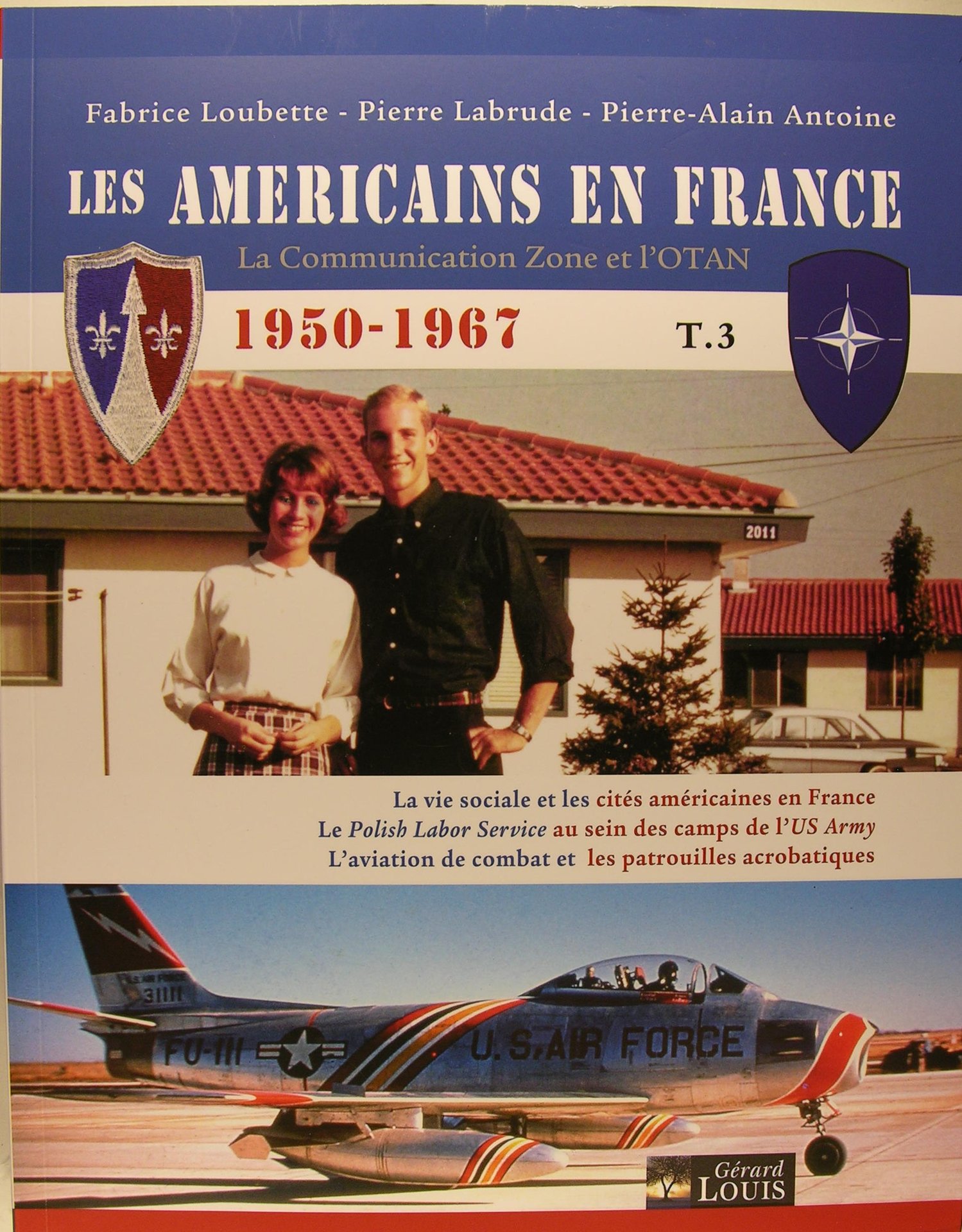 Gérard Louis éditeur, 2022, in/4 broché, 276 pages. Illustrations en noir et blanc et en couleurs. "Ce troisième volume des Américains en France a la même ambition que les deux qui l'ont précédé : faire découvrir des aspects méconnus de cette présence militaire étrangère dans notre pays pendant une période de paix. Présents avec leur famille, les Américains se sont efforcés de mener une vie familiale et sociale aussi normale que possible. C'est pourquoi ils ont bénéficié de magasins – les fameux PX -, d'écoles, de terrains de sport ou encore de clubs. En pleine crise du logement, ils ont également bénéficié de "villages" ou d'immeubles qui leur étaient réservés. Un architecte, qui a longuement étudié ce sujet, vient éclairer notre étude par son expertise. Les camps américains étaient gardés par des unités civiles spécialisées, constituées d'anciens militaires polonais, qui formaient le Polish Labor Service, et dont les membres étaient aussi accompagnés de leurs familles. L'histoire de ces Polonais est très peu connue, et n'a pas été racontée jusqu'à présent. Nous le faisons ici, grâce à la documentation et au témoignage du fils de l'un d'entre eux. Ce troisième tome s'achève par une présentation de l'aviation de combat, traitée ici par type d'unité aérienne, complétée par l'histoire jusque maintenant peu abordée des patrouilles acrobatiques. Celle-ci fera revivre un peu les spectacles qui étaient offerts à l'occasion des journées portes-ouvertes"