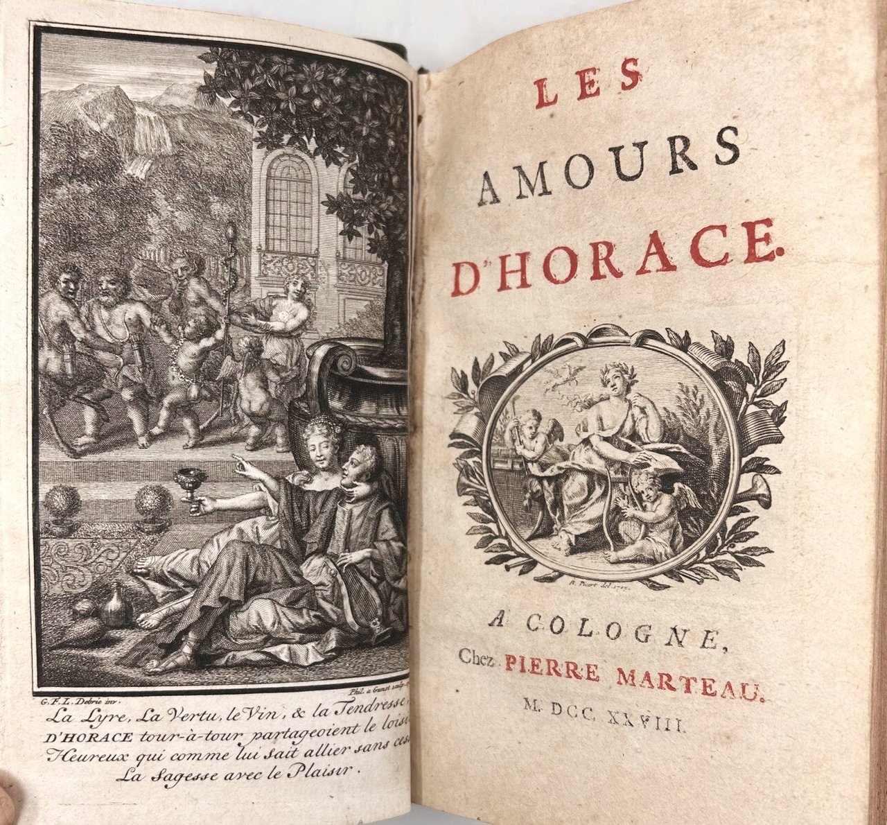 >in-12 (15,5x9), pp. (40), 328, legatura posteriore marocchino verde ad imitazione antica, fregi a secco sul piatto superiore e al dorso. Con bell'antiporta allegorico figurata inciso da Phil. a Gunst, vignetta al titolo inciso da B. Picart. Prima edizione, apparsa anonima, di questo romanzo galante composto da cinque lunghe lettere ad un immaginario ''Marquis de B...'', che testimonia da parte del suo autore una profonda conoscenza di Orazio e di altri scrittori latini, oltre che una certa conoscenza delle letterature europee, compresa quella italiana, citando Ariosto e Tasso. Esemplare in buono stato nonostante qualche lieve arrossatura della carta e qualche macchietta marrone. Barbier , Anonimi, I, 146. Gaye, I, 142.