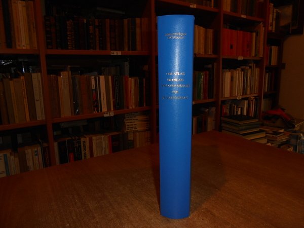 PASTOUREAU MIREILLE. Paris, Bibliothèque National, 1984. LES ATLAS FRANÇAIS XVIE-XVIIE SIÈCLES: RÉPERTOIRE BIBLIOGRAPHIQUE ET ÉTUDE. In-4°, piena pelle editoriale azzurra con titoli in oro sul piano e al dorso. viii, 695, (1) pp. con 166 illustrazioni, tavole e carte nel testo. Fondamentale catalogo ragionato dei cartografi francesi dei secoli XVI e XVII. Come nuovo. Uff. B - II - 7 - 2