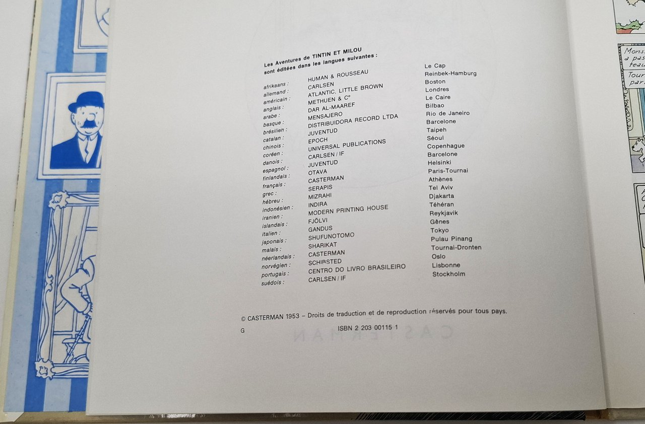 Fumetto cartonato, a colori, appartenente alla serie 'les aventures de TINTIN et MILOU'. Imprimé en Belgique. In lingua francese. Formato: 23 x 30,5 cm circa. 62 pagine. Stato di conservazione: Ottimo. privo di firme di appartenenza, abrasioni, o altri difetti. Copertina editoriale cartonata rigida, illustrata a colori.