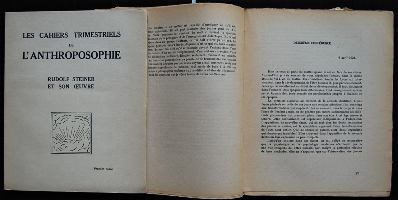 Sauerwein, 1929. LES CAHIERS TRIMESTRIELS DE L'ANTHROPOSOPHIE. RUDOLF STEINER ET SON OEUVRE.