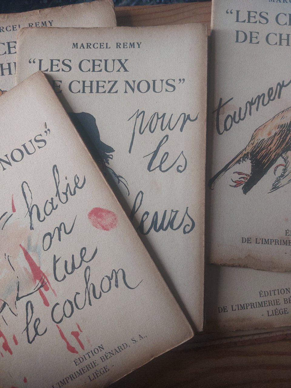 Edition originale parue en fascicules. Ici 11 sur 12 manque le 11. 1er plat ill., sous emboitage amateur défraîchi. "Les Ceux de chez nous" est un recueil de contes écrit par Marcel Remy, un écrivain belge né en 1865 à Bois-de-Breux, près de Liège, et décédé en 1906 à Berlin. Entre 1901 et 1906, Remy a rédigé vingt-et-un textes inspirés de ses souvenirs d'enfance dans la ferme familiale de Bois-de-Breux. Ces récits, initialement publiés dans le Journal de Liège, décrivent avec humour et fraîcheur la vie quotidienne dans les campagnes liégeoises du début du XXe siècle : l'école, le catéchisme, la vie familiale, le voisinage. Le langage, enrichi de mots wallons et enfantins, plonge le lecteur dans un univers vivant, plein de rires et de bons mots.