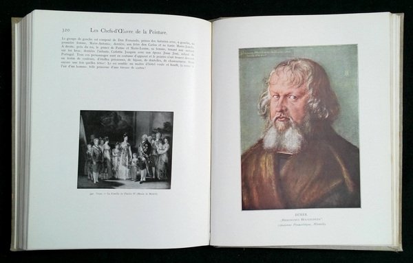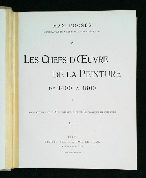 8vo (270x215 mm); leg. in piena tela grigia con illustrazione in b.n. e titoli al piatto anteriore, titoli al dorso, tagli in oro; pp. XII, 378, (1); 410 ill. in b.n. e 13 tav. a colori (con relativo elenco all'ultima p. non numerata). Prima edizione. L’anno di pubblicazione non è indicato (ma dovrebbe essere 1909).-- Non daté. In-4 Carré. Hardcover Cartonnage d'éditeurs. Bon état. Intérieur frais. 378 pages. Frontispice en couleurs hors-texte. Nombreuses illustrations en noir et blanc dans le texte et en planches hors-texte. Quelques planches d'illustrations en couleurs, hors-texte. Relié pleine toile grise, avec illustration noire et blanche, en vignette, sur le 1er plat de couverture. -- FIRST EDITION OF THIS COLLECTION REGARDING MASTERPIECES BY FAMOUS PAINTERS FROM 1400 TO 1800. -- Rif.: IT\ICCU\LIA\0642829. OCLC, 879141083. Cond.: Opera in condizioni generali molto buone.