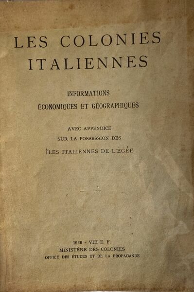 Les colonies italiennes. Informations economiques et geographiques avec appendice sur la possession des iles italiennes de l'Egèe