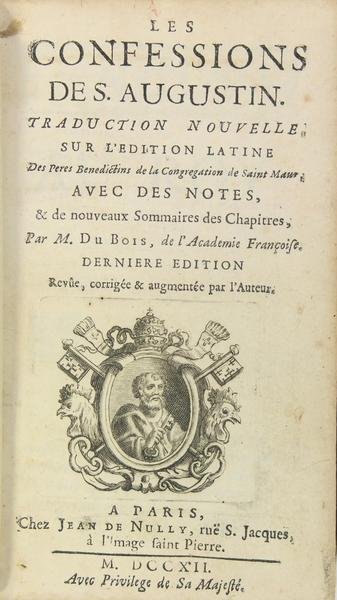 Les confessions. Traduction nouvelle sur l’édition latine des Pères Bénédictins de la Congrégation de Saint Maur avec des notes, & de nouveaux sommaires des chapitres