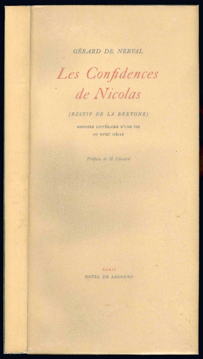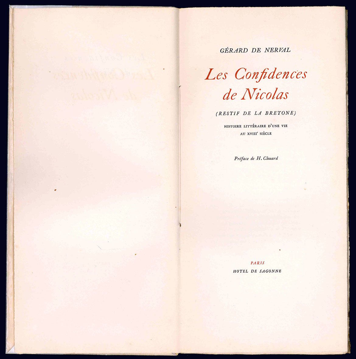 Les confidences de Nicolas. (Restif de la Bretone). Histoire littéraire d'une vie au XVIII siècle. Préface de H. Clouard.