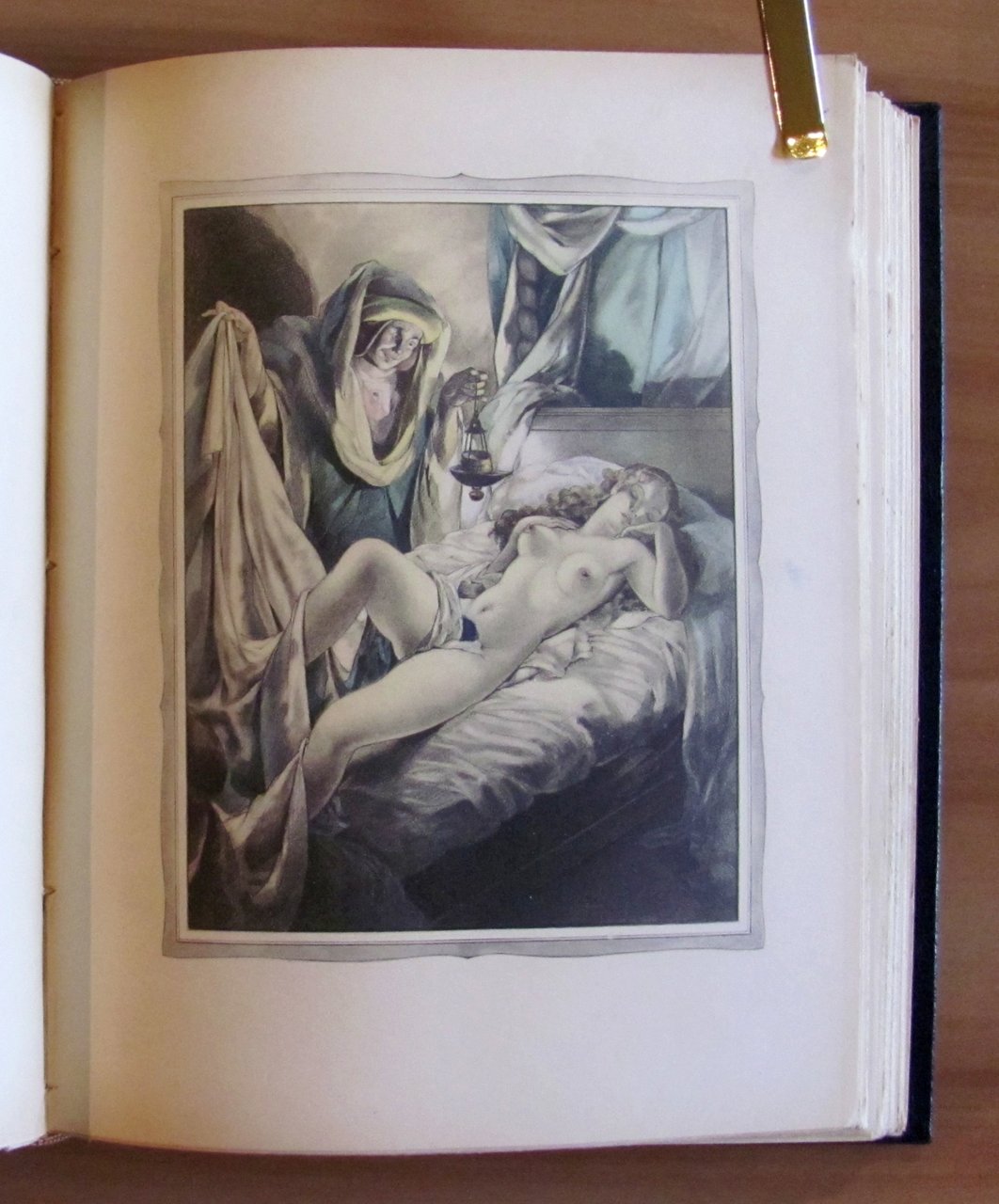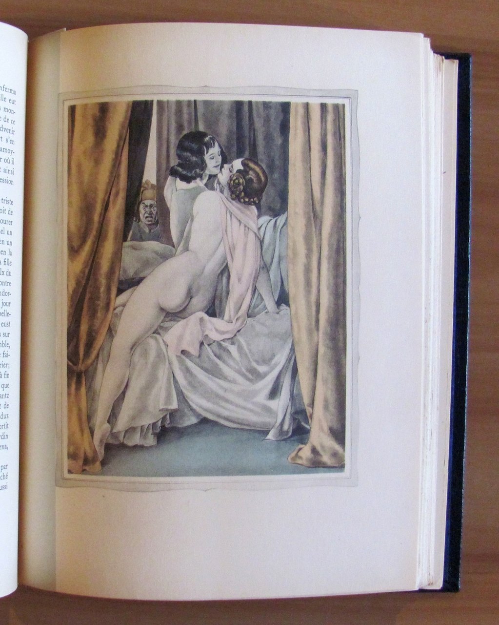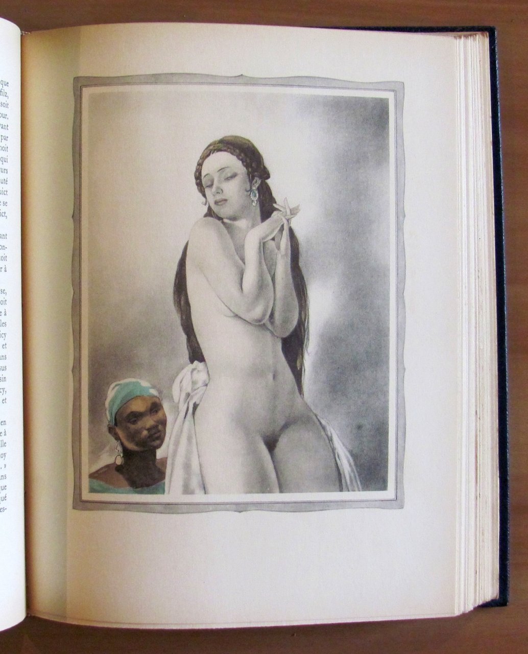Vol. I - Les cinq Premières Journées; Vol. II - Les cinq Dernières Journées. 70 illustrazioni fra capilettera, testatine e finalini in b/n n.t. e 16 splendide tavole a colori f.t., per ciascun volume, di Brunelleschi. Libr. Gibert Jeune - Paris, I edizione 1934. Tiratura Limitata a 2500 Esemplari Numerati, nostro N° 530. Belle legature in pelle con nervi e titoli in oro al dorso inseriti rispettivamente in custodia cartonata con copertine ante-retro e dorsi conservati all'interno di ciascun volume. Ex-Libris applicati al risguardo in entrambi i volumi. Minime imperfezioni alle cuffie e alle cerniere dei dorsi ma libri perfettamente solidi e freschissimi. 21x26,5; pp.342+281. Rari ed entrambi in Ottimo stato. , Ottimo (Fine)
