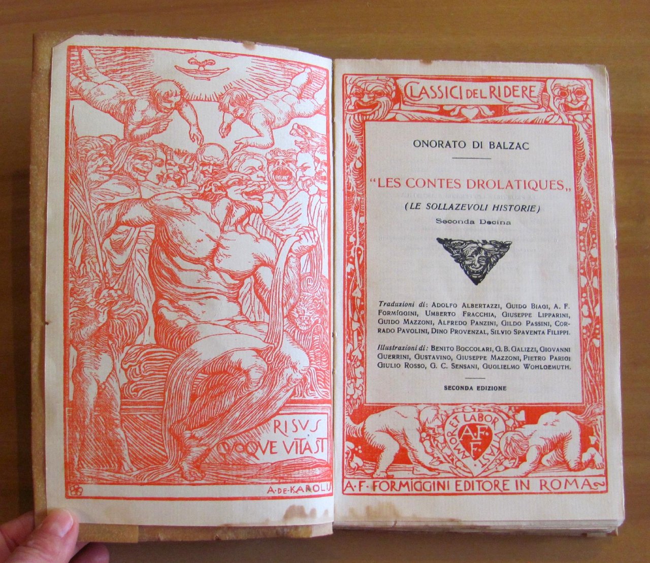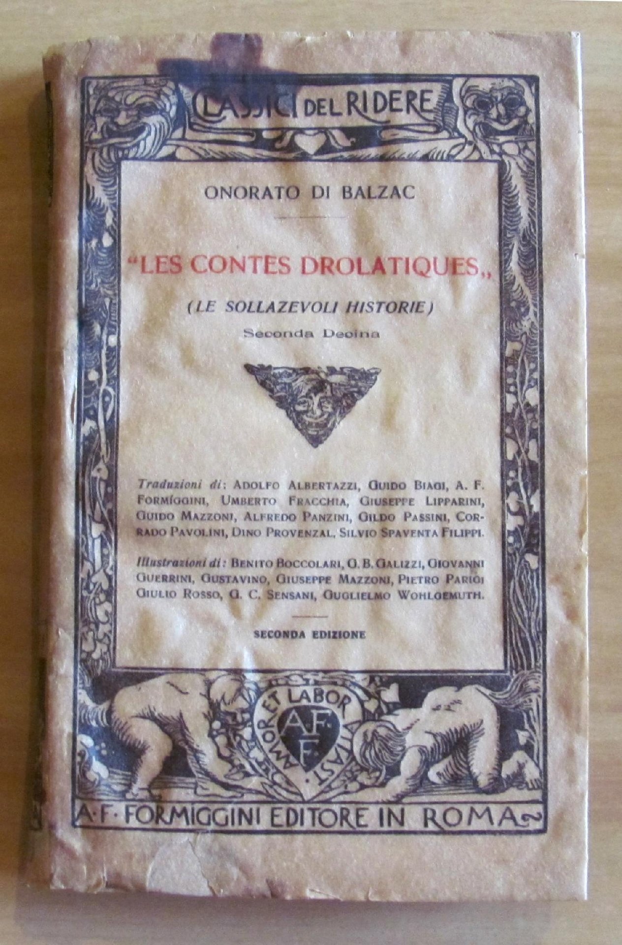 Illustrazioni in b/n f.t. di Boccolari, Galizzi, Guerrini, Gustavino, Mazzoni, Parigi, Rosso, Sensani, Wohlgemuth. Editore Formiggini - Roma, II edizione 1930. Copertina editoriale in carta pergamenata con ali. Lievissime ondulazioni della copertina e macchia nella parte alta del piatto. Piccolo strappo alla sola pag.140. Interno peraltro freschissimo. 13,5x21,5; pp.260. OTTIMO STATO. , Molto buono (Very Good)