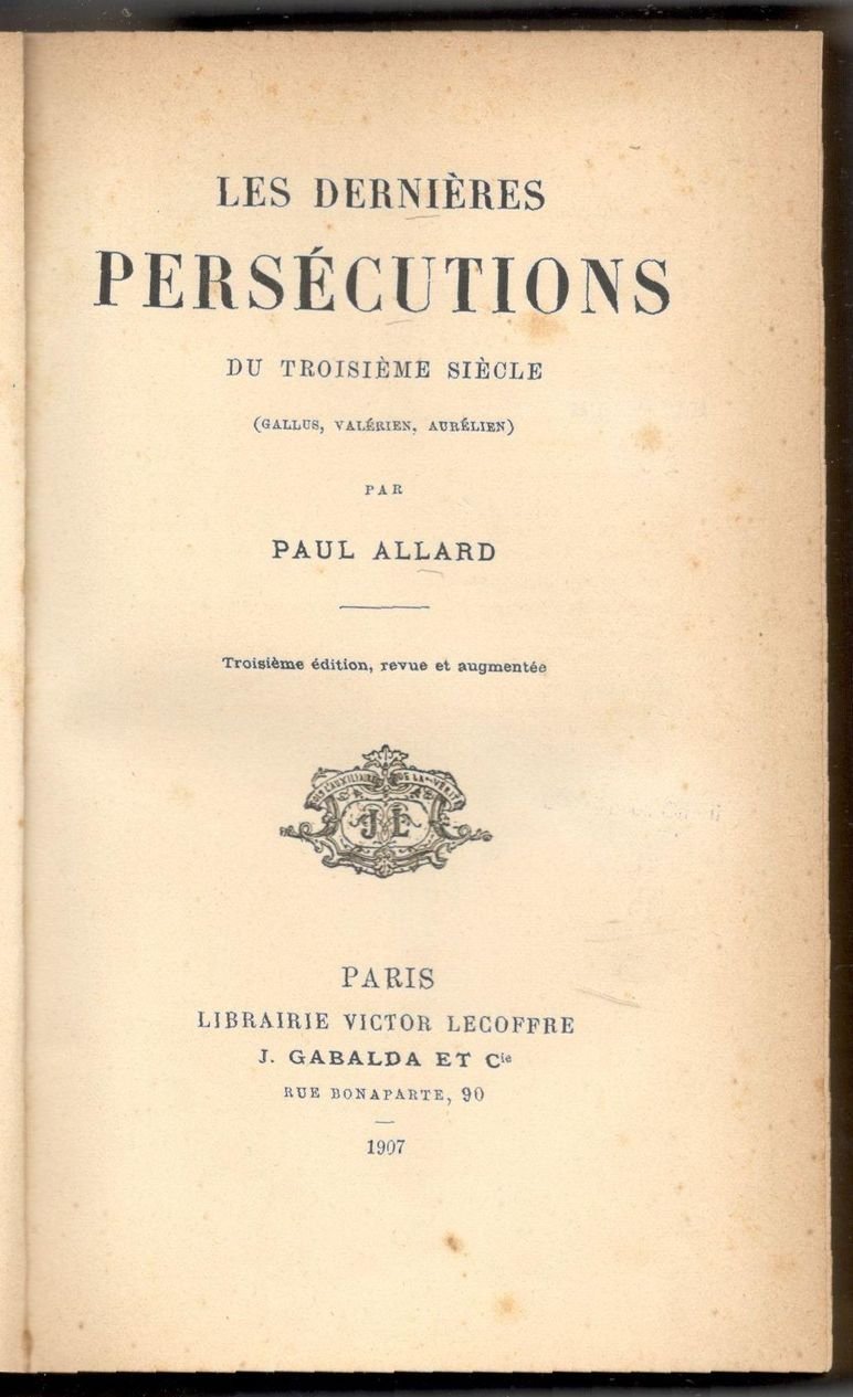 Les dernières persécutions du troisième siècle (Gallus, Valérien, Aurélien)