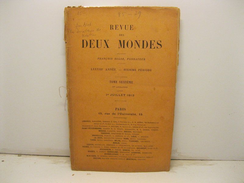In 8, pp. 162-192. D. rifatto. Br. ed. Estratto da Revue des deux mondes.