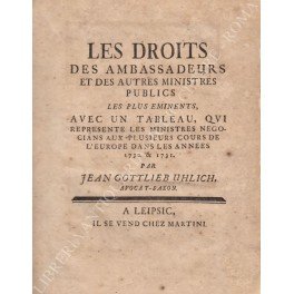 Les droits des ambassadeurs et des autres ministres publics les plus eminents, avec un tableau, qui represente les ministres negocians aux plusieurs cours de l'Europe dans les annees 1730 & 1731