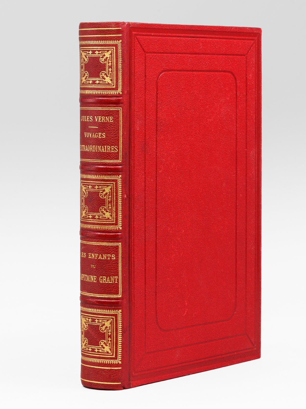 Illustrés de 172 vignettes par Riou, gravées par Pannemaker, 1 vol. in-8 reliure de l'époque demi-chagrin rouge dite « aux fers de lance » (ou « harpons » ou "reliure à la lancette"), dos à 4 nerfs orné, toutes tranches dorées, reliure signée de A. Lenègre, Collection Hetzel, Coll. Les Voyages Extraordinaires, Bibliothèque d'Education et de Récréation, J. Hetzel et Cie, Paris, s.d. [ 1891 ], 624 pp. et 4 ff. (Catalogue FX) Bon état pour cet exemplaire en reliure "aux fers de lance" connue également comme "reliure aux harpons" (qq. rouss., petit accroc marginal à 3 ff., très bon état par ailleurs).