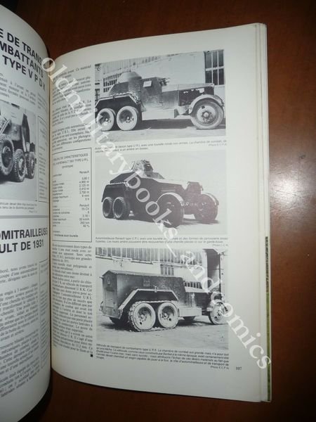 DESCRIZIONE: Ed. Argout, Paris, 1976, in 4°, br. ed. ill. a col., pp. 144 con molte ill. b/n n.t. e qualcuna a colori Volume monografico in lingua francese su tutti i mezzi corazzati dell'armata francese nel periodo 1920-1945. Carri armati, auto blindate, auto mitragliatrici, auto cannoni, mezzi di servizio e di trasporto, ecc. delle varie case produttorici: Renault, Citroen, Panhard, Berliet, Gendron, Laffly, Latil, Vinot e Bugatti. CONDIZIONI: Buone. Pellicola della copertina leggermente staccata, piccole ammaccature ai bordi. PESO / WEIGHT: 570 gr. without package