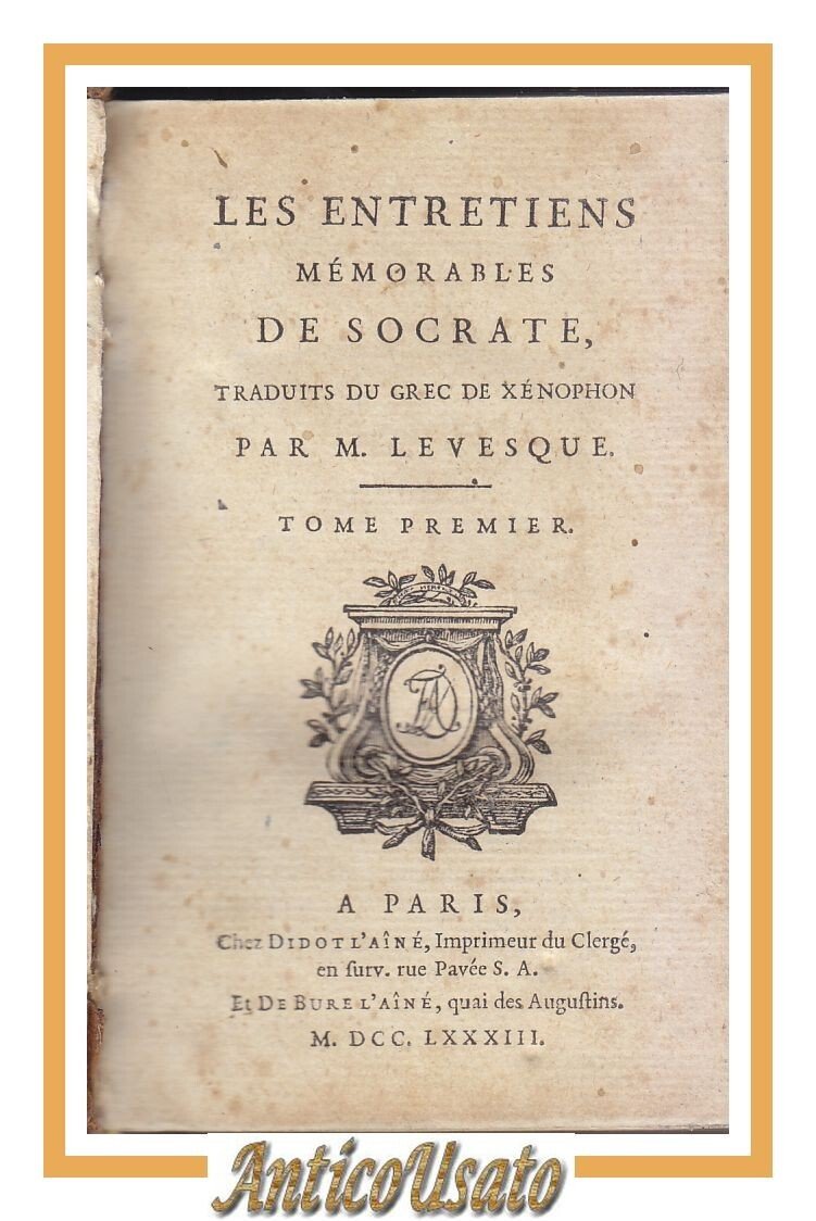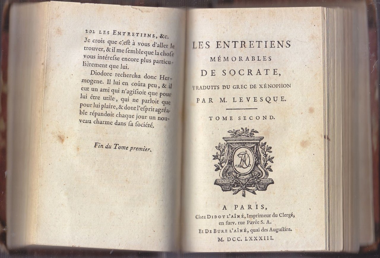 LES ENTRETIENS MEMORABLES DE SOCRATE tome I e II 1783 Didotlaine Libro Antico