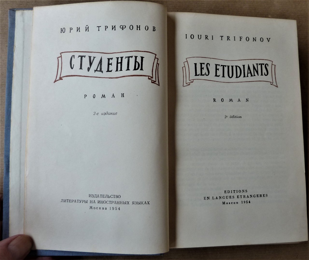 Un volume de format in 8° de 528 pp.; reliure de l'éditeur en pleine toile bleu-ciel; couverture illustrée, décor estampé. Dos bruni. Sinon intérieur très frais. Voir photos. Fils d'officier supérieur de l'Armée Rouge éliminé par Staline, Trifonov commença sa carrière d'écrivain dans le style du réalisme socialiste. Il obtint pour ce titre "Les étudiants", le Prix Staline 1950. Puis évoluant vers une littérature russe plus classique il fut pressenti pour le Prix Nobel mais mourut quelques mois avant. A découvrir.