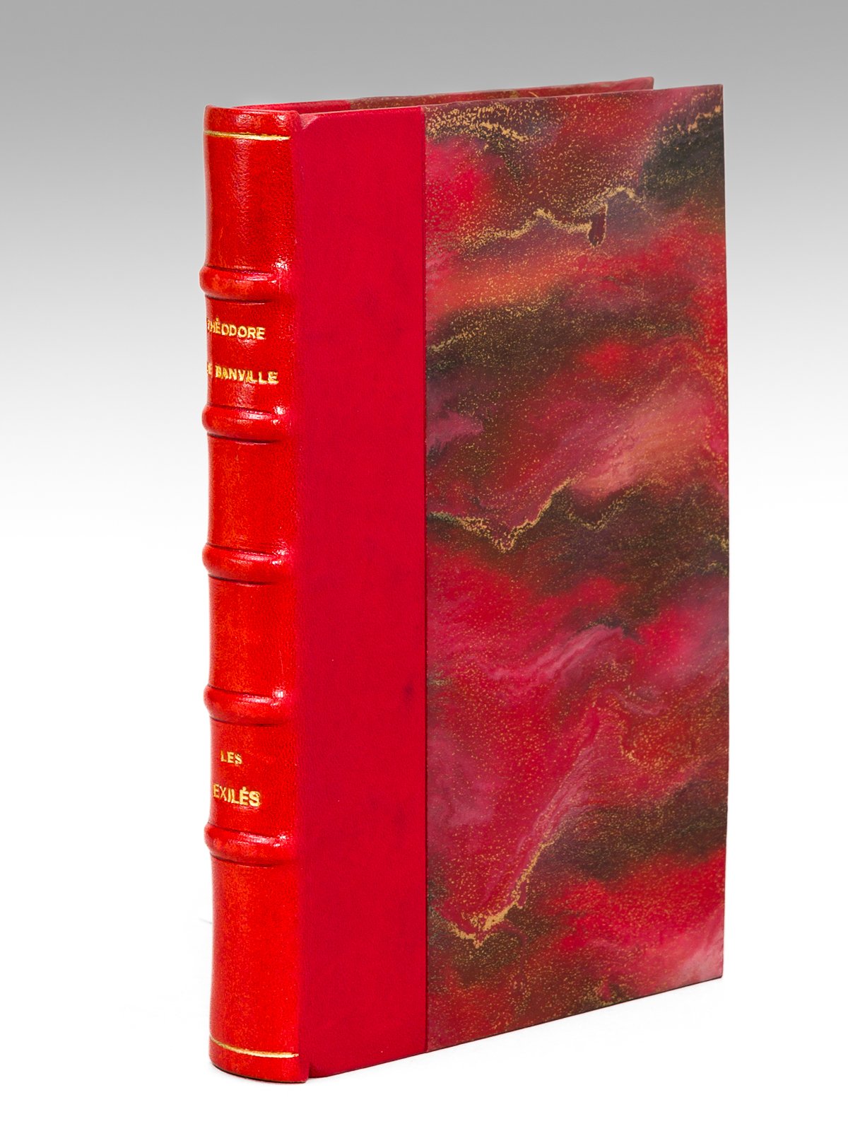 1 vol. in-12 reliure postérieure demi-basane rouge, dos à 5 nerfs, couvertures conservées, Alphonse Lemerre, Paris, 1867, 2 ff., 234 pp. et 1 f. n. ch. avec 2 ff. ajoutés : Les Hommes Nouveaux, dessin de Gill (Théodore de Banville) Bon exemplaire de l'édition originale, complet des couvertures d'origine et enrichi en feuillet blanc d'une carte de visite de Théodore de Banville, et in fine d'un numéro replié des "Hommes Nouveaux" avec un beau dessin en couleurs de Gill. Bon exemplaire (ex-libris en garde). Vicaire, I, 270