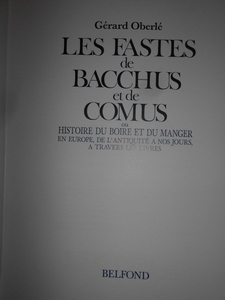Les Fastes de BACCHUS et de COMUS ou Histoire du Boire et du manger en Europe, de l' antiquité a nos jours, a travers les livres