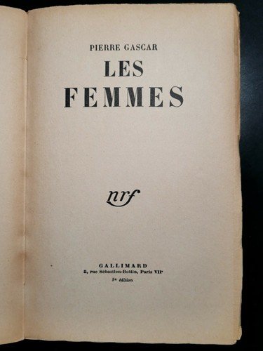 img{max-width:100%}LES FEMMES di Pierre Gascar. Gallimard editore, IX edizione, 1955. 219 pagine. Copertina editoriale in brossura. Stato di conservazione: molto buono (pagine normalmente ingiallite, piccola mancanza alla copertina)