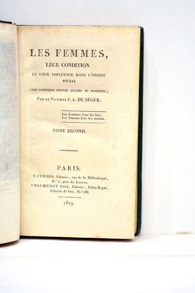 Les femmes, leur condition et leur influénce dans l'ordre social chez différents peuples anciens et modernes. Tome second.