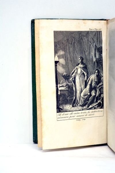 Tome 2 seul. Frontispice. 280 pages. (17,5x10,5cm). Demi-basane verte. Plats en cartonnage couvert de cuir. Dos lisse titré en lettres dorées. Quelques frottements et défauts d'usage sur la reliure. Infimes rousseurs à l'intérieur. Etat général agréable. Exemplaire particulièrement frais bien relié dans une demi-basane verte du temps. Belle gravure en frontispice.