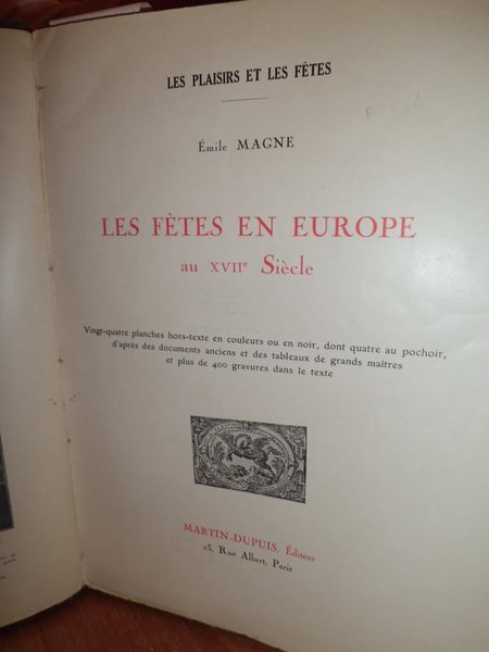 IN - 4°, CARTONATO CON TASSELLO AL DORSO, COPERTINE ORIGINALI CONSERVATE. (8), 393 PP. CON OLTRE 400 INCISIONI N.T. E 24 TAVOLE F.T. (4 COLORATE "AU POCHOIR", DELLE QUALI UNA SU DOPPIO FOGLIO RAFFIGURANTE UNA SCENA DI CACCIA) TRATTE DA DOCUMENTI E DIPINTI DI GRANDI MAESTRI. OPERA ASSAI BELLA ED IMPORTANTE PER LA STORIA DEL COSTUME NEL SEICENTO. SI TRATTA DEL SECONDO VOLUME DI UNA COLLANA INTITOLATA "LES PLAISIRS ET LES FETES" ; IL PRIMO RIGUARDA LE FESTE IN ORIENTE E NELL' ANTICHITÀ. EDIZIONE DI 700 ESEMPLARI " SUR PAPIER ALFA TEINTÉ". VINGT - QUATRE PLANCHES HORS - TEXTE EN COULEURS OU EN NOIR, DONT QUATRE AU POCHOIR, D' APRES DES DOCUMENTS ANCIENS ET DES TABLEAUX DE GRANDS MAITRES ET PLUS DE 400 GRAVURES DANS LE TEXTE. AU GRAND ARTISTE CHARLES DESPIAU CE LIVRE D' IMAGES ANCIENNES EST DÉDIÉ EN D' TÉMOIGNAGE D' ADMIRATION ET D' AMITIÉ. HILER, BIBLIOGRAPHY OF COSTUME, P. 714.