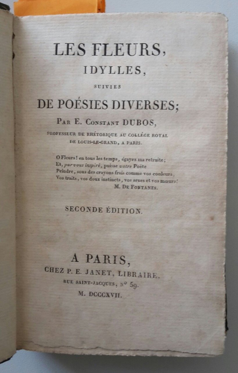 LES FLEURS IDYLLES SUIVIES DE POESIES DIVERSES PAR C. DUBOS PARIS P.E.JANET 1817