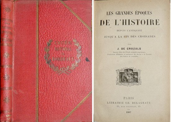 Paris, Libraire Charles Delagrave, 1887. 4to.; l h. , 268 pp. Falto de papel en margen blanco inferior de la última página de texto. Encuadernación original en tela estampada.
