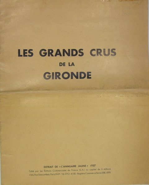 Extrait de l’annuaire jaune, 1957. Plaquette grand in/4 brochée, 20 p., carte, illustrations : reproductions de nombreuses étiquettes de grands crus.