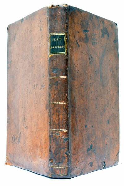 VIII. 221 pages. (i.e. 261). (20x12,5 Cm). Plein veau. Dos lisse orné (reliure de l'époque). Coins et coiffes émoussés. Petit travail de vers sur le 1er plat. Taches et rousseurs. Petite mouillure sur les dernières pages de l'ouvrage. Edition imprimée à Amsterdam de la traduction en français par Voyron et Gabiot du chef d'œuvre du littérateur jésuite René Rapin. Publié initialement en latin en 1665 sous le titre "Hortorum libri IV", cet ouvrage valut à son auteur une réputation européenne. Divisé en quatre chants ("les fleurs", "les bois", "les eaux", "les fruits"), il fut de nombreuses fois réimprimé et traduit en plusieurs langues. Présentée avec le texte original latin en regard, la présente traduction est par certains jugée supérieure à la première traduction française parue en 1773. Notes manuscrites anciennes sur le feuillet de garde. Beaux ornements et culs de lampes.