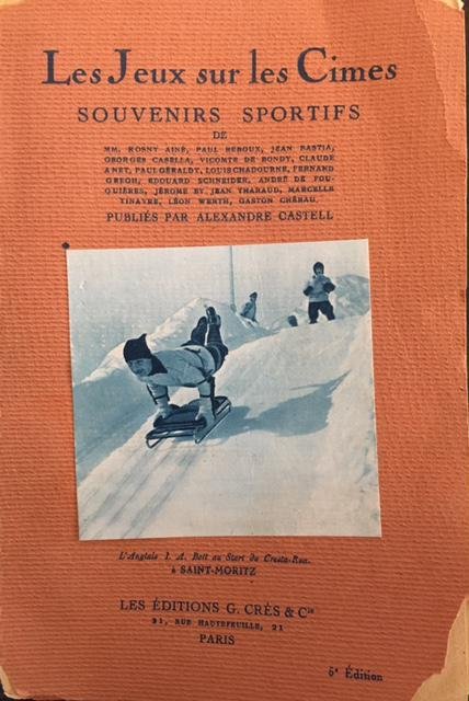 >in-16, (mm. 180x120) pp. (4), III, 107, (3), brossura editoriale arancio con illustrazione applicata al piatto (difetti agli angoli). Adorno di16 fotografie seppiate f.t. raffiguranti i principali sport invernali in località elvetiche: lo sci a Junfraujoch, a Sainte-Croix, a Davos, nell'Alta Engadina, l'hockey su ghiaccio a Gstaad, la toboga a Grindelwald, il pattinaggio su ghiaccio a Villars presso il Dent du Midi, il Kristiania a Adelboden, il bob ad Arosa, la corsa dei cavalli a Saint Moritz, i ghiacciai del Rosegg a Pontresina, Andermatt e la Furka, Engelberg e il ghiacciaio del Titlis. Quinta edizione di quest'opera dedicata agli sport invernali in Svizzera. Esemplare con dedica di Castell in antiporta. Manca al Perret.