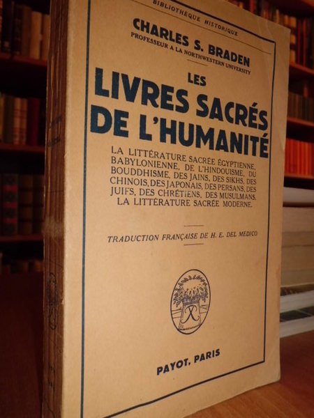 La littérature sacrée égyptienne, bayloniennne, de l'hindouisme, du bouddhisme, des jains, du sikhs, des chinois, des japonais, des persans, des juifs, des chrétiens, des musulmans. La littérature sacrée. Charles, Braden. Paris, Payot 1955. Traduction française de H. E. Del Medico. In - 8°, br. 419, (9) pp. Bell' esemplare.