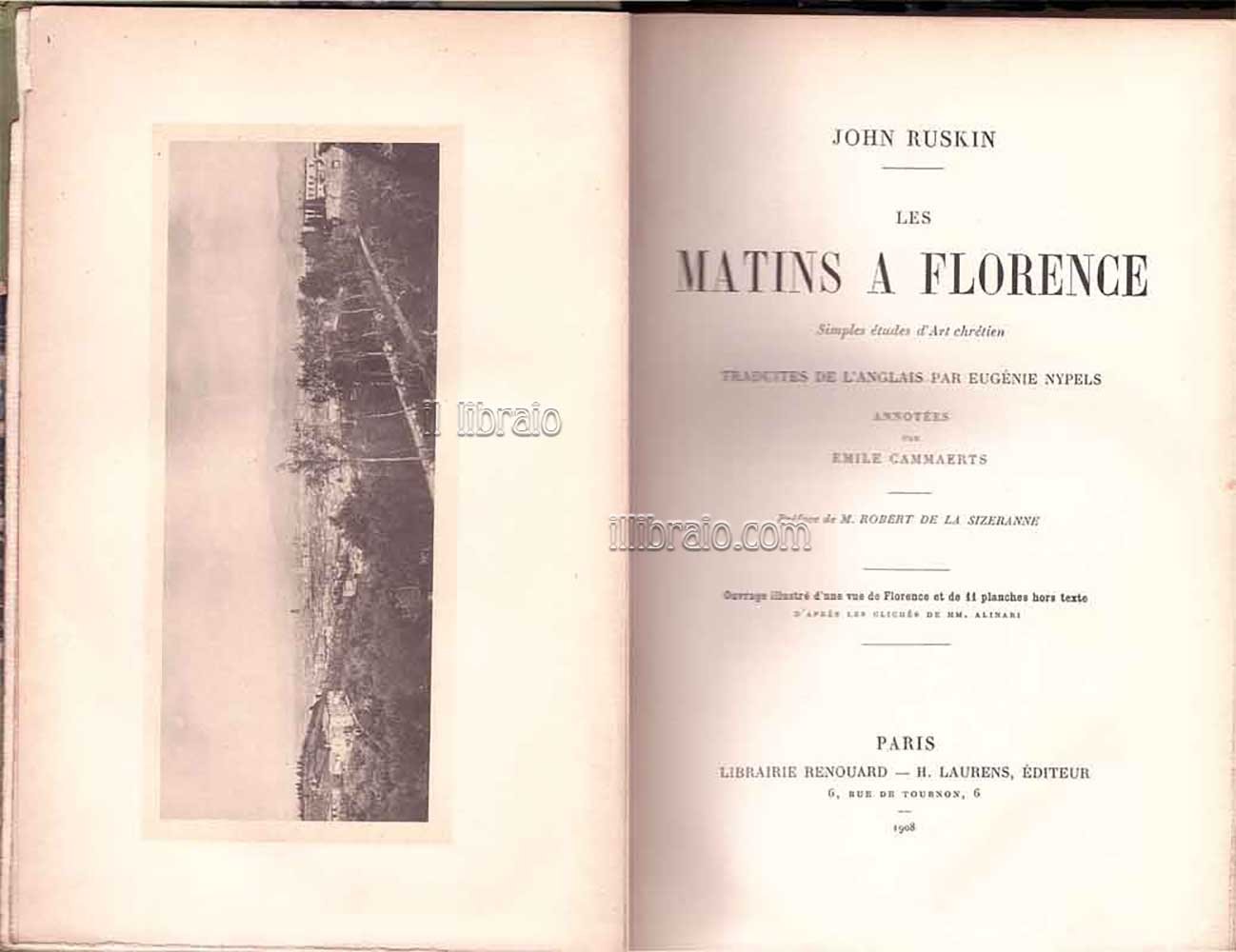 in 8°; pp. XXXII, 224 + 12 tavv. (ill. bn.); leg. originale in pregevole mezza tela con piatti marmorizzati e taglio superiore in oro. Traduites de l'anglais par Eugéne Nypels, annotées par Emile Cammaerts. Préface de Robert de la Sizeranne. 12 illustrazioni f.t. di Alinari protette da pergamina