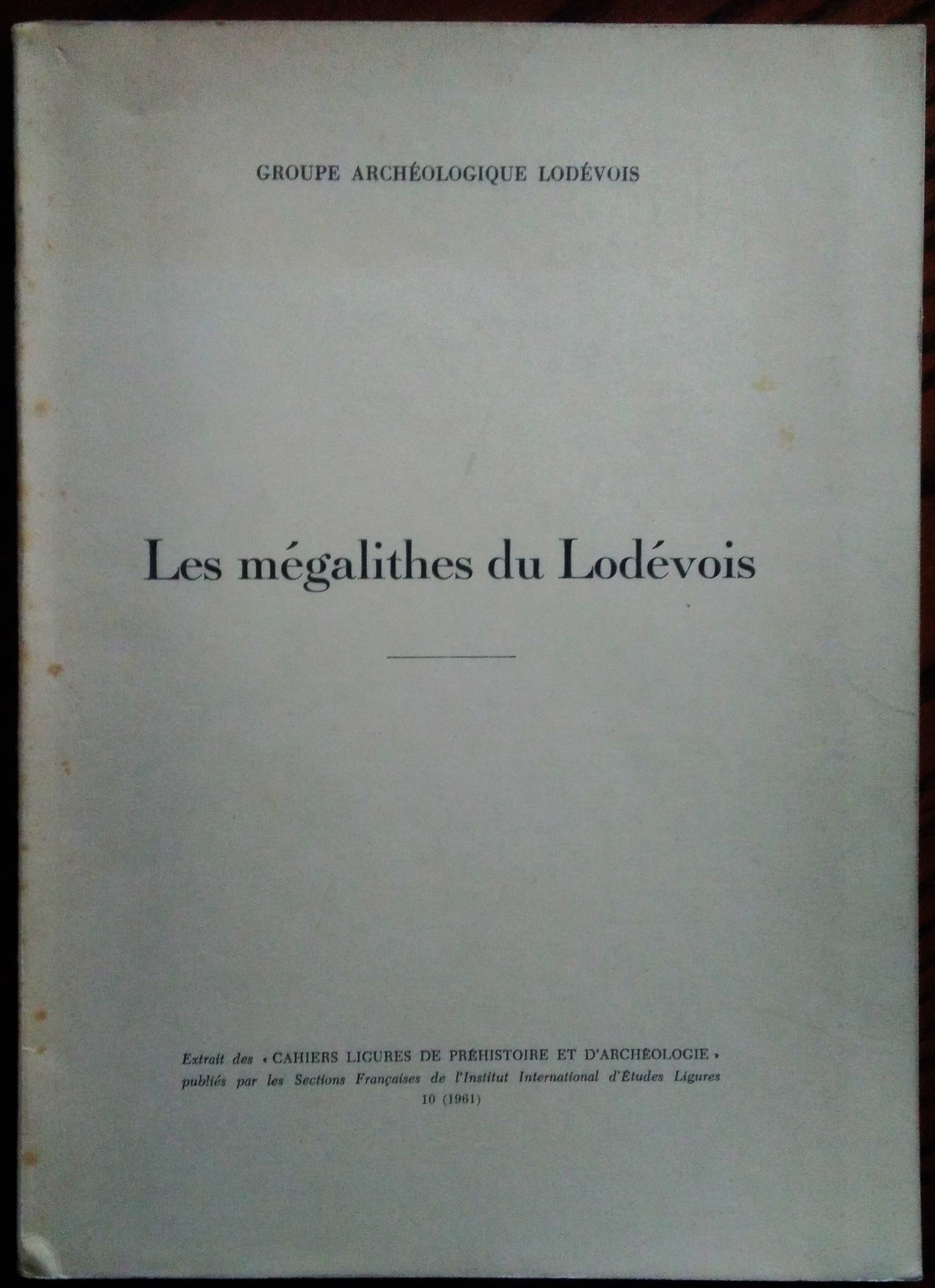 Extrait des "Cahiers Ligures de Prehistoire et d'Archeologie", 1961. 8°, pp. 109, 57 illustrazioni, 6 tavole fuori testo, brossura editoriale. Bella copia.