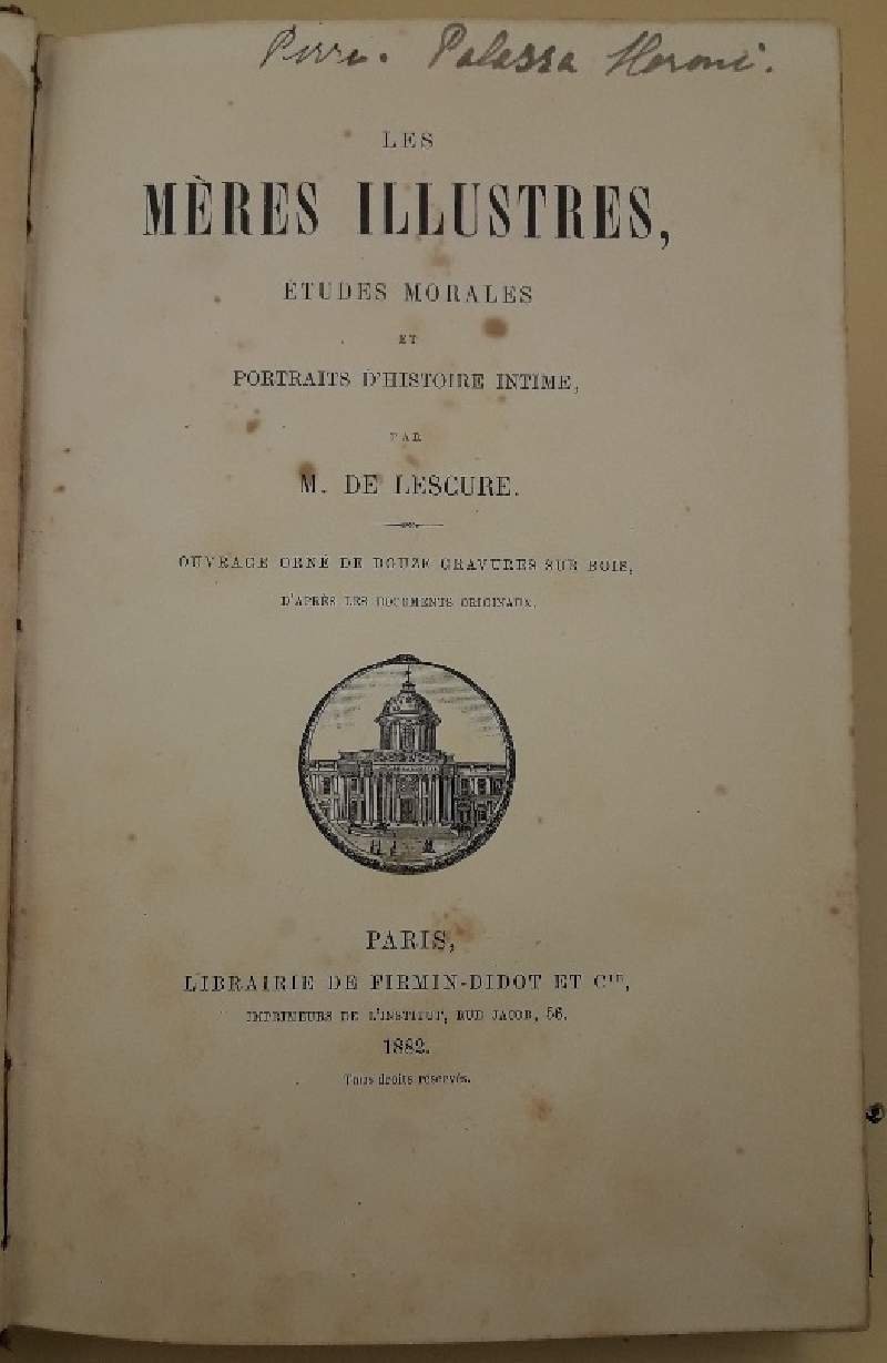 LES MERES ILLUSTRES, ETUDES MORALES ET PORTRAITS D'HISTOIRE INTIME(1882)