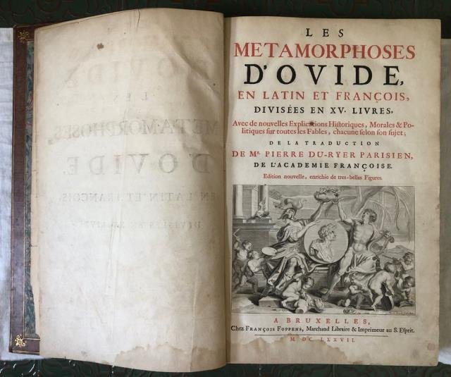 Les metamorphoses d’Ovide en latin et francois divisèes en XV Livres. Avec de nouvelles explications Historiques, Morales & Politiques sur toutes les Fables, chacune selon son sujet; De la traduction de Mr. Pierre du Ryer Parisien, de l’Academie Francoise. Edition Nouvelle, enrichie de tres – belles Figures.