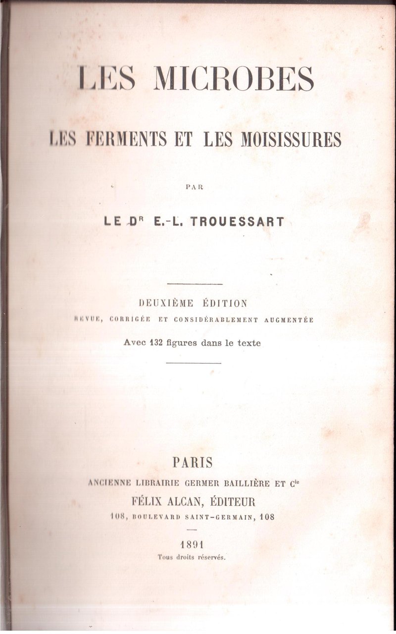 Les Microbes Les ferments et les moisissures - Deuxième édition revue, corrigee et considerablement augmentée avec 132 figures dans le texte