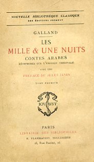 4 voll. in-16°, pp. XXXVI, 367; (4), 396; (4), 380, (4); (4), 385, (3); brossura editoriale. Restauri alle brossure, ma buon esemplare in barbe. Edizione per bibliofili nella Nouvelle Bibliothèque Classique des Éditions Jouaust delle 'Mille e una Note' nella classica traduzione francese dell'abate Galland; curatore del volume è Paul De Morelly. L'Alf laila wa-laila', ossia 'Mille e una Notte', il più grande classico della letteratura araba, assurse a fama universale già nel Settecento, quando venne per la prima volta tradotto dal Galland. Il materiale narrativo dell'opera proviene soprattutto da fonti più antiche della novellistica persiana e indiana, sicché la matrice originaria risulterebbe indo-iranica e aria, poi contaminata e aggiornata con fonti della Baghdad degli Abbàsidi, sino ad una più tardiva stratificazione dell'Egitto dei Mamelucchi. Tuttavia, la struttura più attuale dellopera non è quella originaria, perché la versione di Antoine Galland, iniziata nel 1704, fu condotta su un manoscritto siriano del XIII secolo ora serbato alla Nazionale di Parigi, ma contaminando la narrazione originale con racconti estranei alle fonti originarie, come per esempio quelli di Aladino ed i cicli dei due Sindbad, provenienti da materiali sia orali che scritti che il Galland ebbe da un maronita, Hannã. Sull'origine delle 'Mille e una Notte', il suo valore artistico e culturale, v. la voce composta da Francesco Gabrieli per l'Enciclopedia Italiana, XXIII, 315-316.