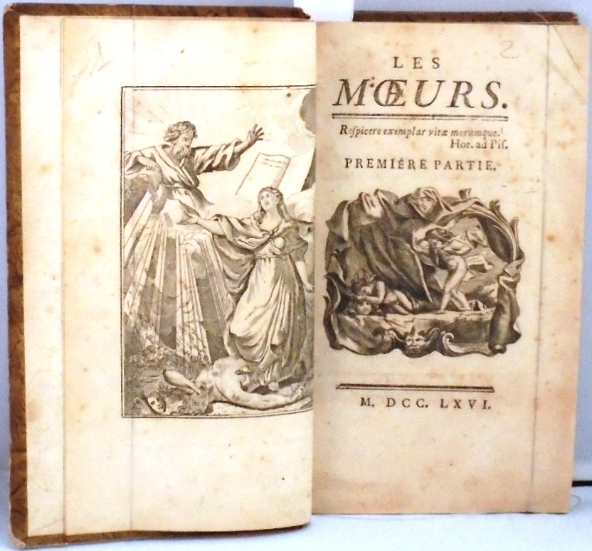 S.L., ., 1766. In 16∞: pp. 528. Con incisioni f.t. raffigurante la virt˘ che "fixe tendrement les regards sur Dieu" all`antiporta, un "fleuron" raffigurante due genii sul front. e tre "vignettes" raffiguranti rispettivamente la Piet‡, la Saggezza e la Carit‡ (dall`Explication du frontespice, des fleurons et des vignettes). Volume in tre parti: PREMIERE PARTIE. De la pietË; SECONDE PARTIE. De la sagesse; TROISIEME PARTIE. Des vertus sociales. Con table, explication, epitre, avertissement e un "discours prliminaire sur la vertu". Leg. mz. pelle edit. guasta, fregi in oro al dorso con spellature, lesioni al canaletto, fioriture.