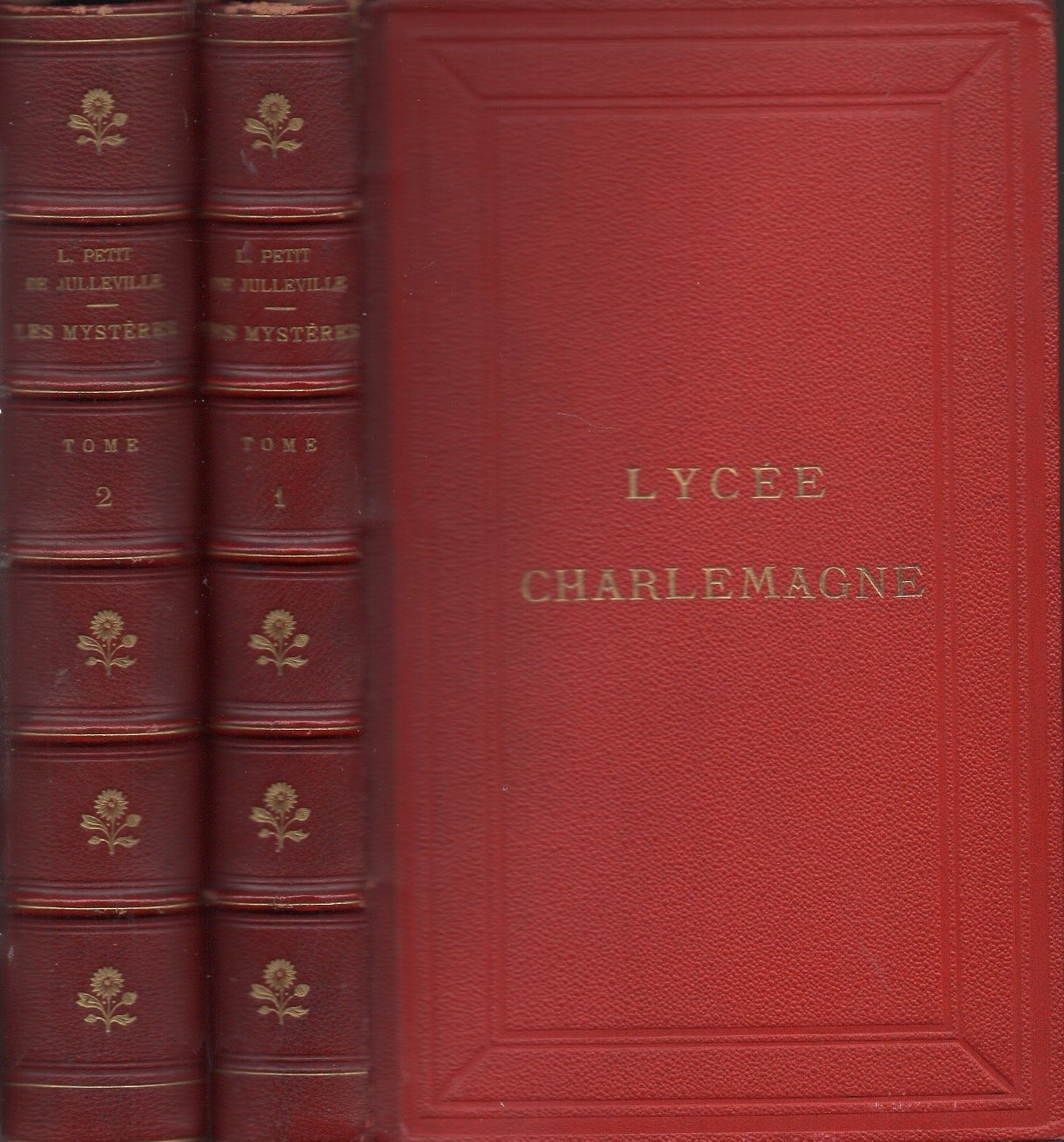 Sul piatto del vol I impresso in oro "Lycée Charlemagne", al suo interno foglietto del 1897 attestante la vincita del primo premio di "Composition francaise" all'allievo Henriot