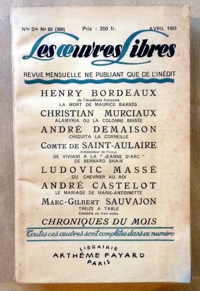 Les Oeuvres Libres. Avril 1953.