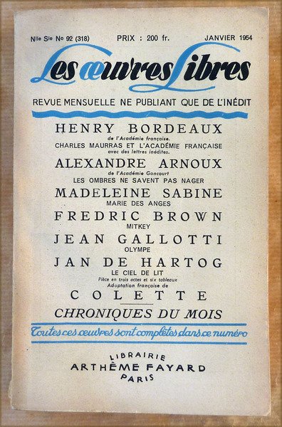 Les Oeuvres Libres. Janvier 1954. Tous les textes sont inédits